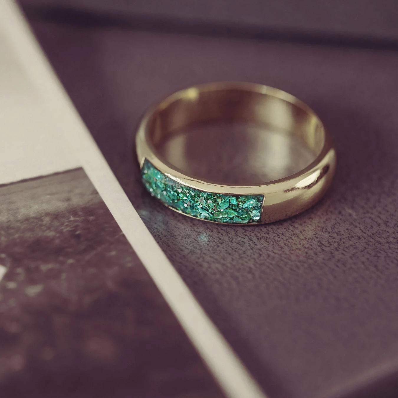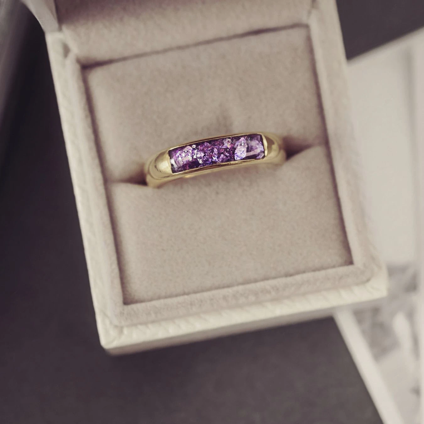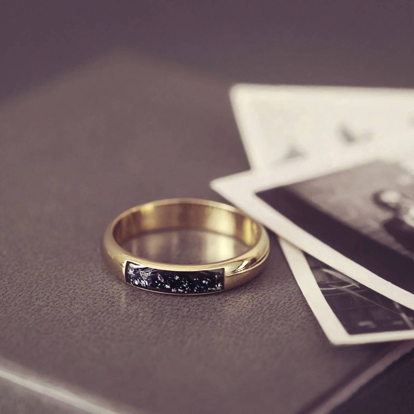 Beautifully designed in solid 9ct yellow gold, our exclusive Mens Gold Ashes Ring Band delicately combines your loved one’s cremation ashes with the enduring beauty of solid gold.Â